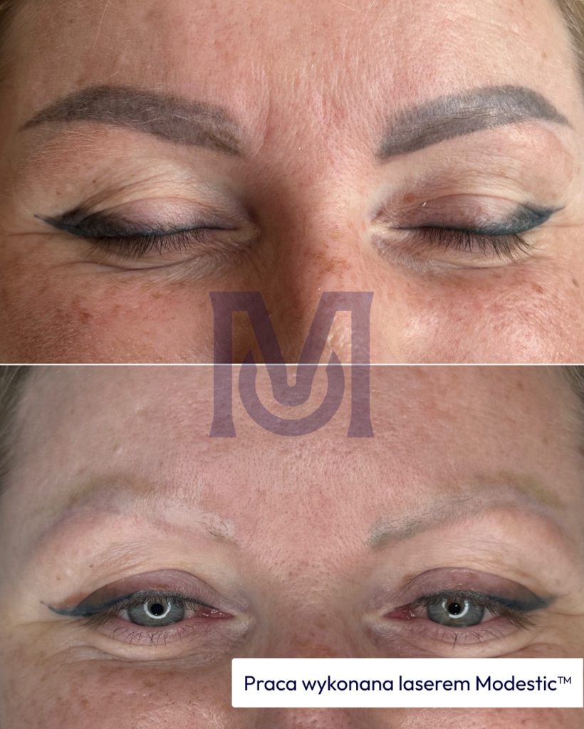Zabieg laserowego usuwania makijażu permanentnego wykonywany laserem Modestic Ultra w gabinecie kosmetologicznym