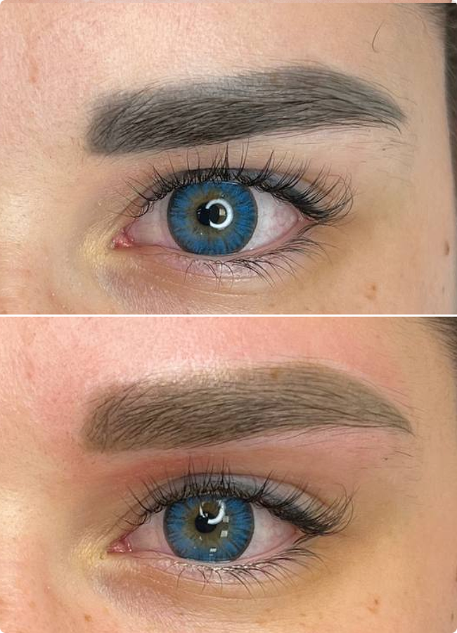 - Szary PMU z zagłębieniami. Pigment hybrydowy. 1 sesja.